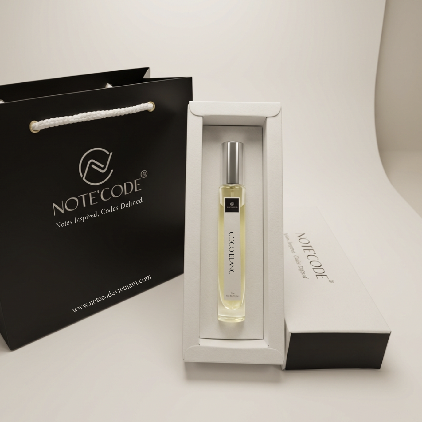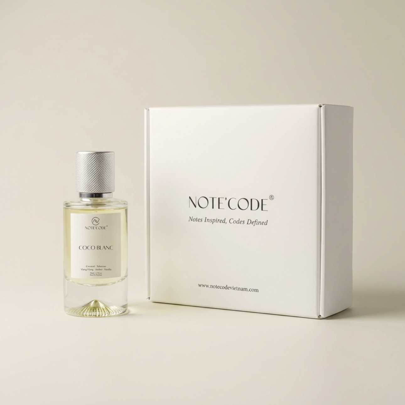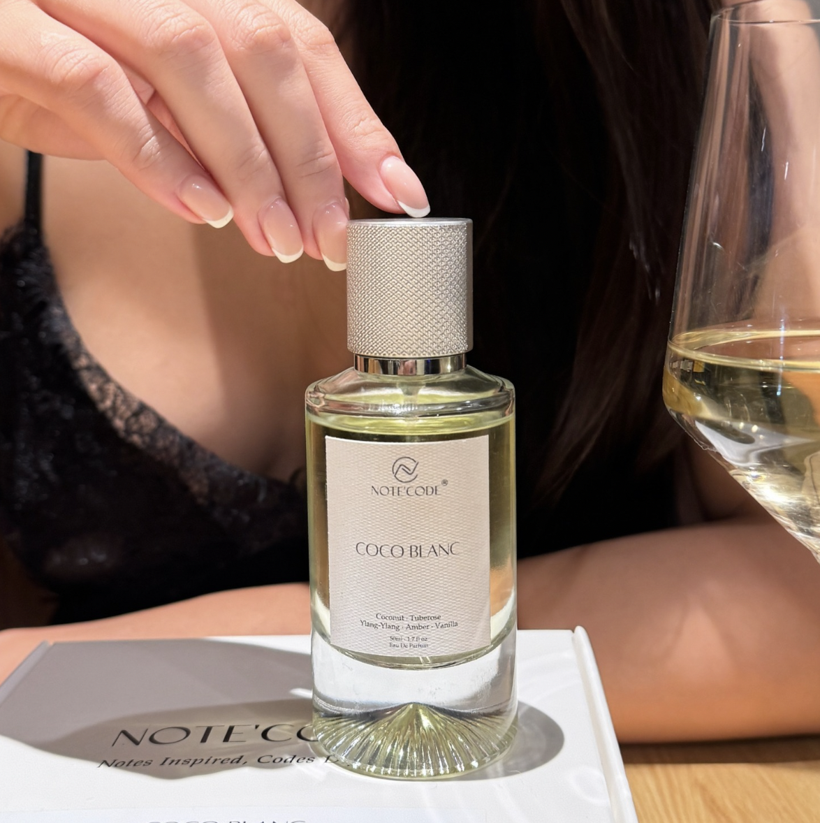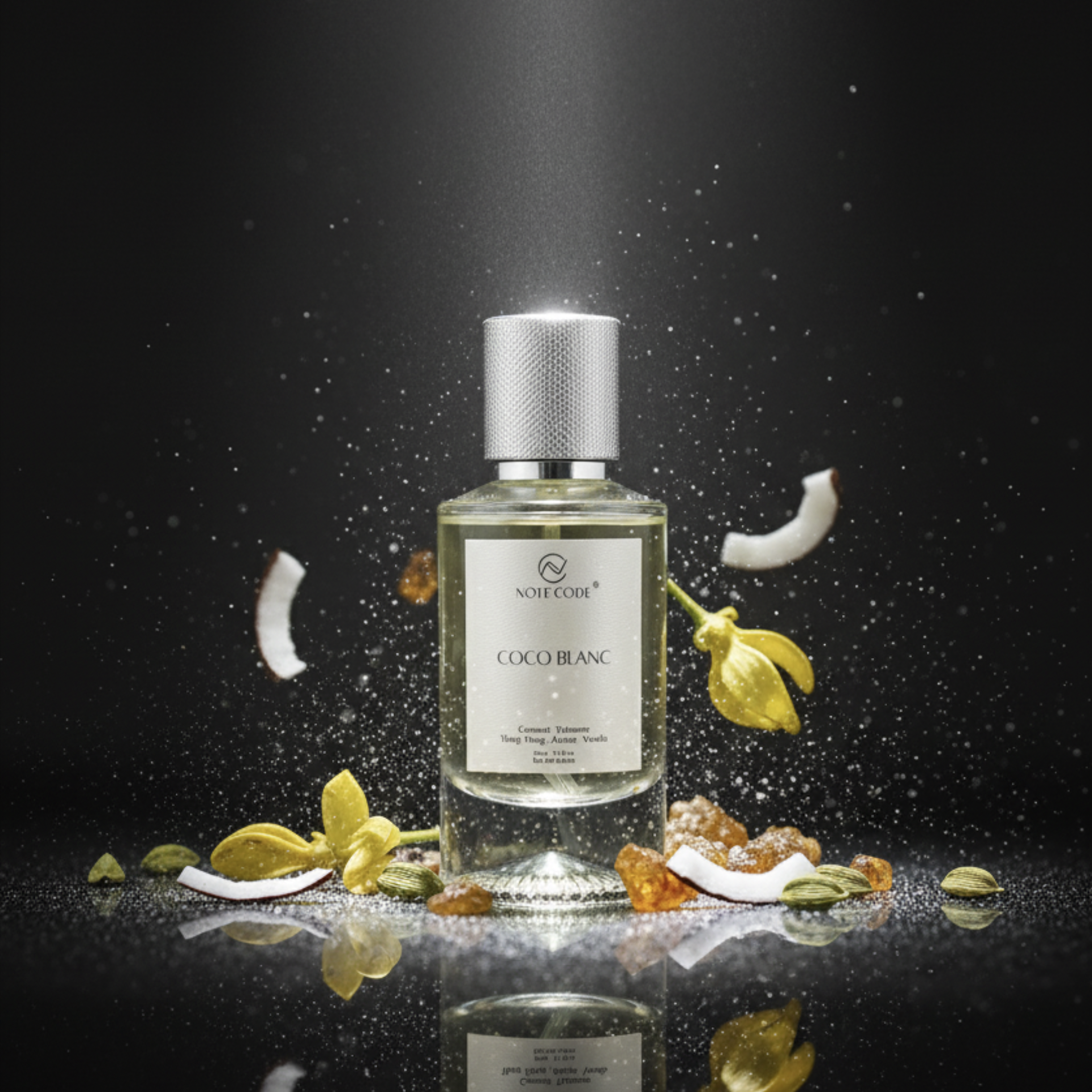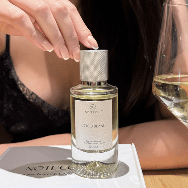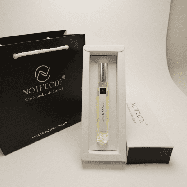COCO BLANC (lấy cảm hứng từ Soleil Blanc của Tom Ford) mở ra với sự kết hợp tinh tế giữa bạch đậu khấu ấm nồng và hồ đào béo bùi, khẽ dẫn lối đến bó hoa trắng thanh khiết, nơi hoa Ylang-Ylang tỏa sáng với nhiều tầng hương – vừa ngọt ngào, vừa cay nhẹ, lại phảng phất nét trái cây nhiệt đới.
